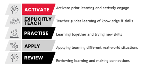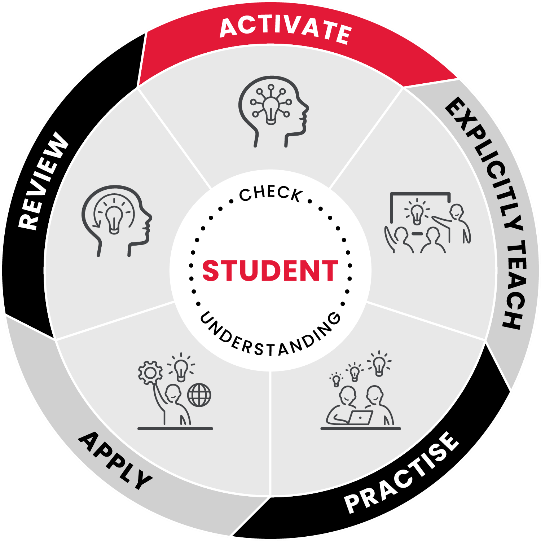 Our Instructional Model, which brings to life our pedagogical approach, has 5 phases of learning – Activate, Explicitly Teach, Practice, Apply and Review. This intentional shift has helped us to lead targeted and sequential, teacher Professional Learning, grounded in the latest evidence and research. Through improvement inquiry cycles, staff see the direct links from the model (phases) to teaching in the classroom (practices), helping them understand each phase and the connected practices proven to improve student learning outcomes.
